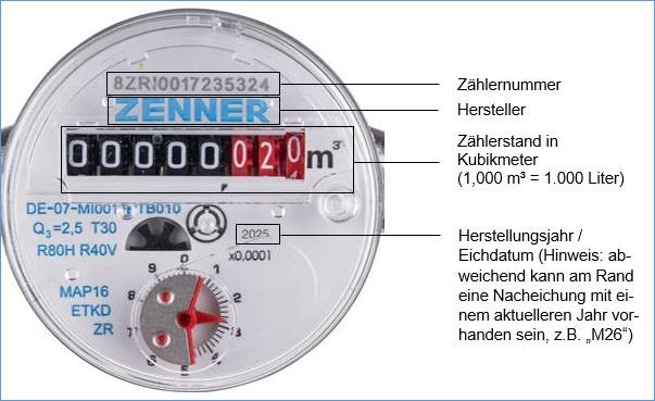 Bitte fügen Sie zu Ihrem Antrag eine Nahaufnahme (Zählerstand und Zählernummer) und eine Fernaufnahme (Umfeld der Zapfstelle, damit erkennbar ist, dass z.B. kein Waschbecken oder Bodenablauf vorhanden ist) von dem Zwischenzähler bei.