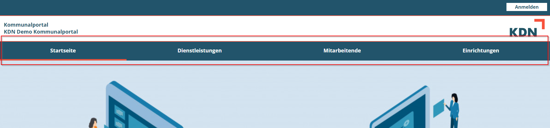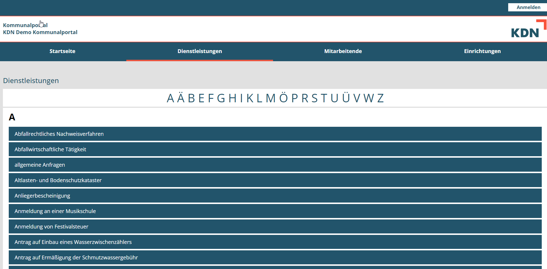 Die Startseite ist die Einstiegsseite ins Serviceportal.