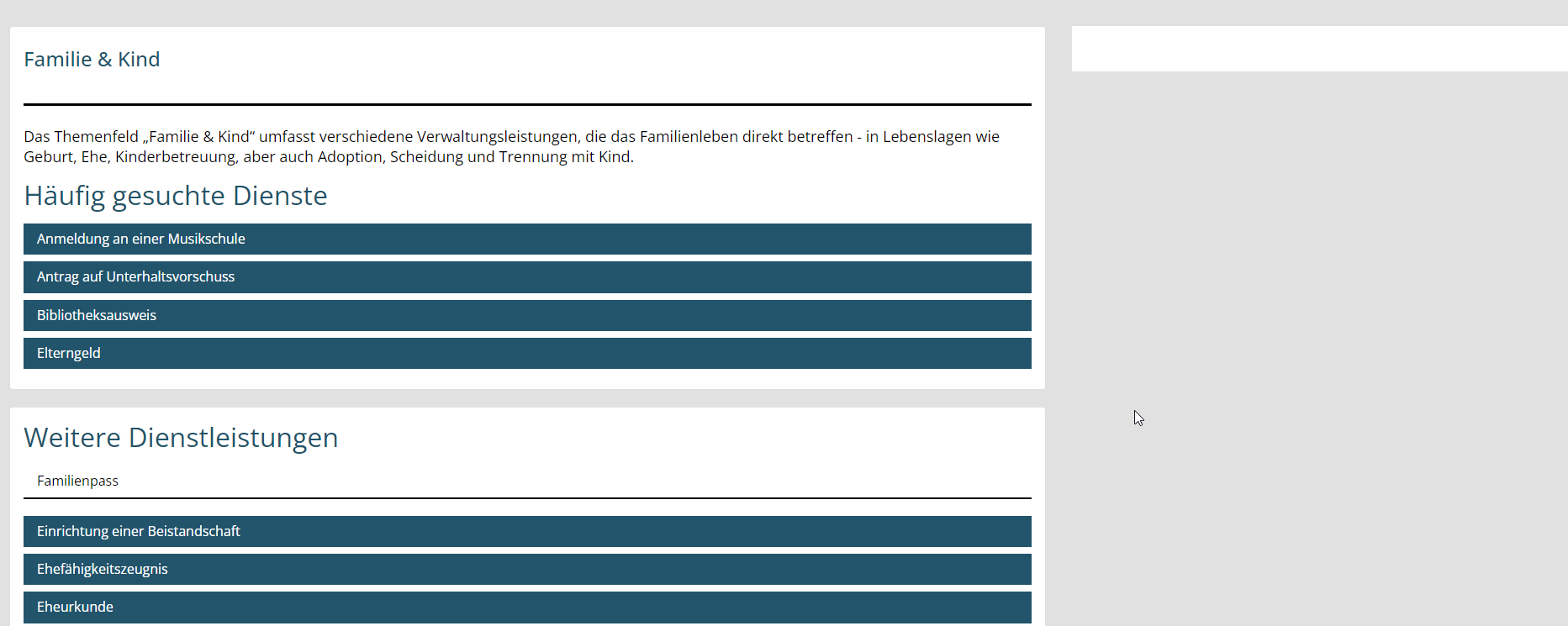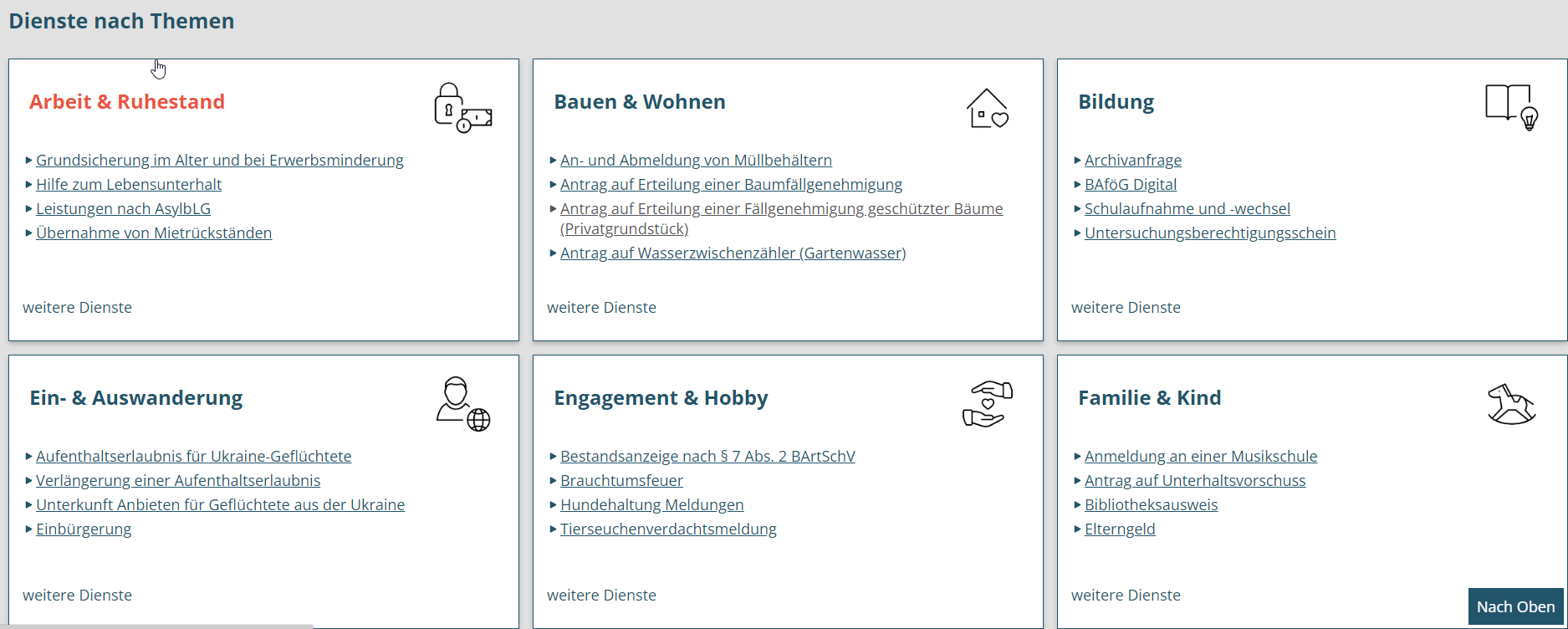 Dort finden Sie Dienst-Leistungen aus diesem Themen-Feld. Zum Beispiel Anträge.